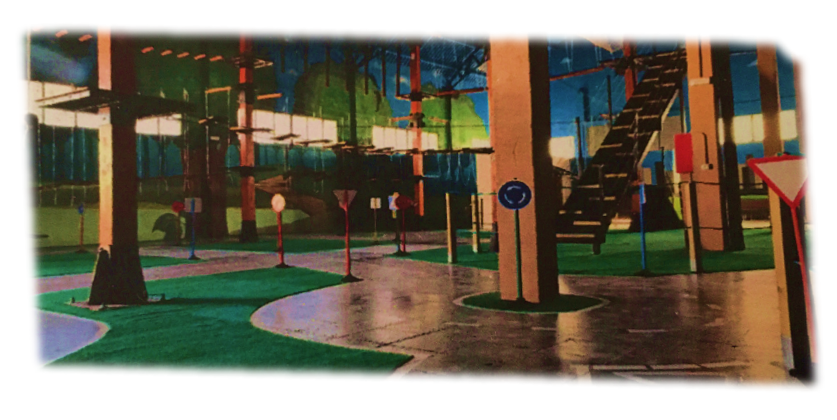 - Parque de aventura a dos alturas (2-8 metros) con 16 pasarelas y tirolina.